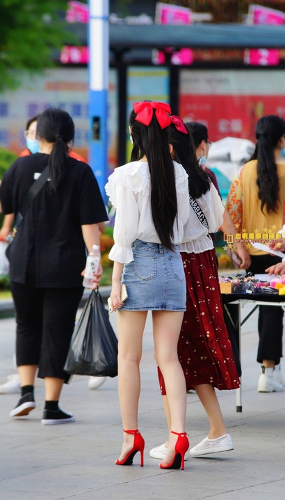 街拍面若桃花的时髦热裤长腿御姐[OP-4K3U]